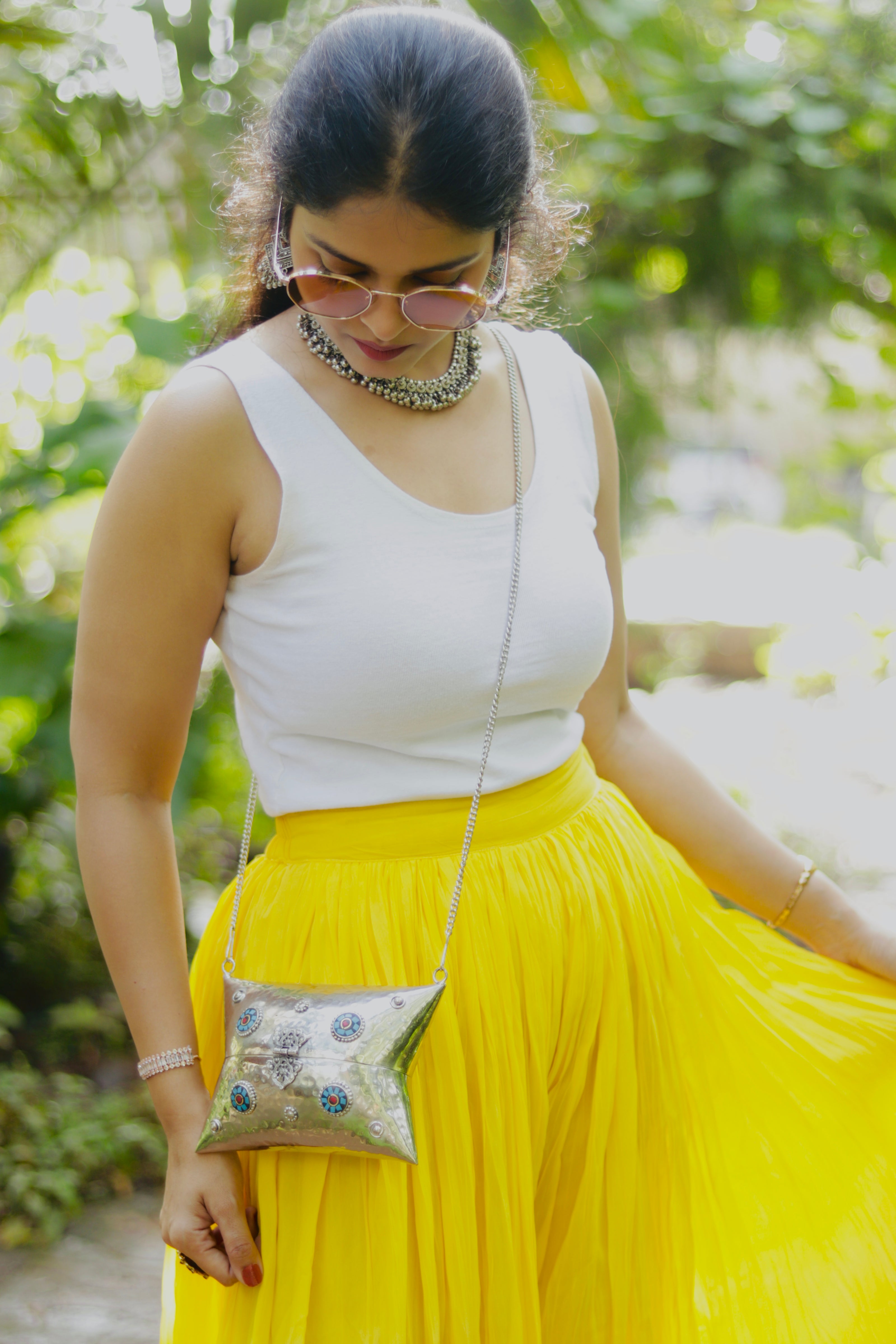 Ethnic brass bag in shell shape