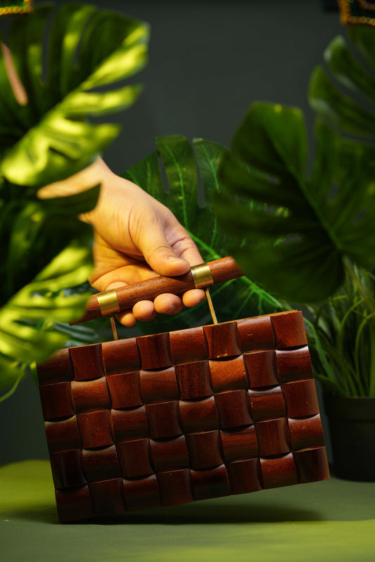Sold outCheckered handbag in Acacia wood