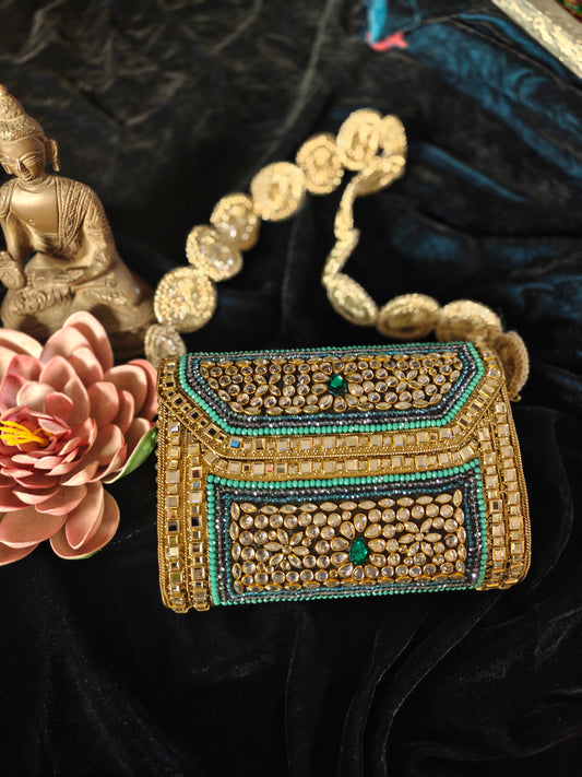 Sheesh Mahal Noor Bag In Kundan and Glass