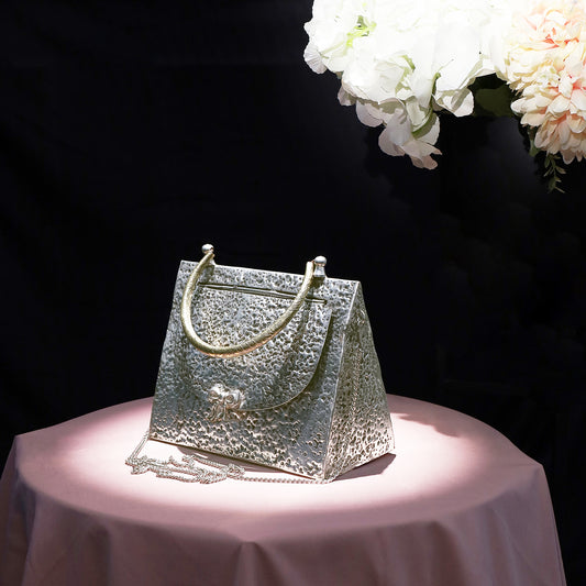 Traingle Hammered Brass Handbag in Antique Silver finish