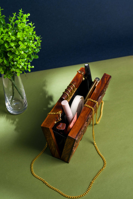 Handcrafted Tropical Brass Silver Tone Mobile Pouch