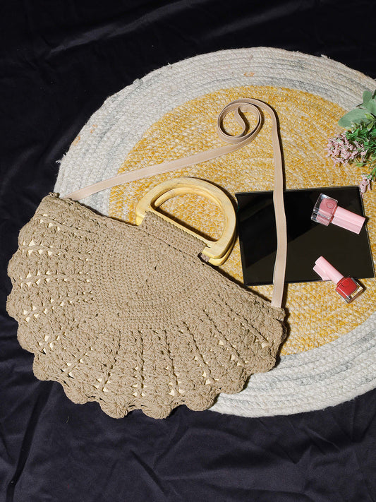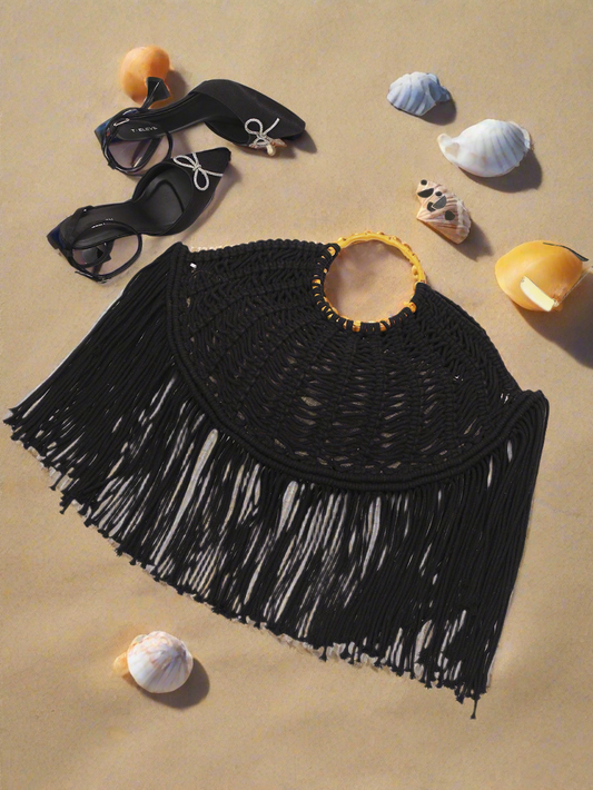 Round Macrame Fringe Boho Bag - Stormy Grey