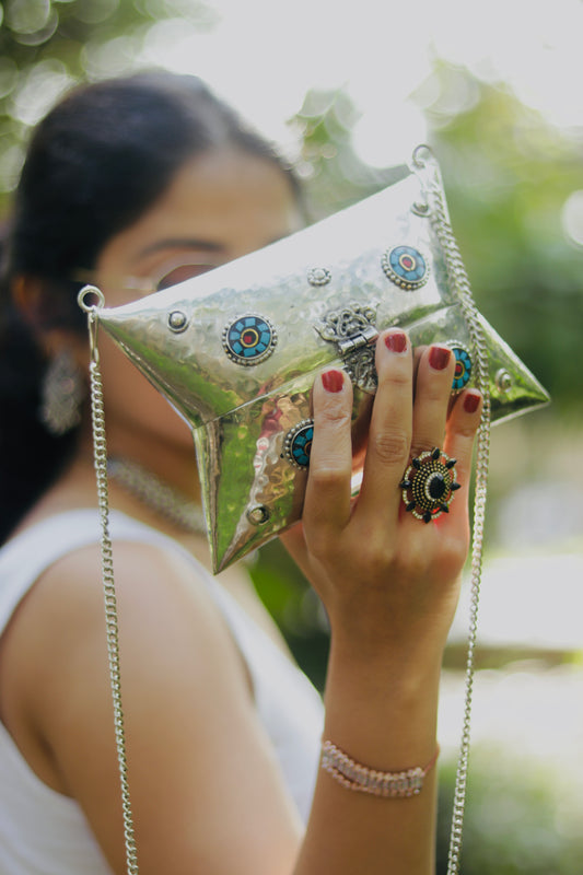 Aafreen Hammered Vintage brass bag with stone mosaic