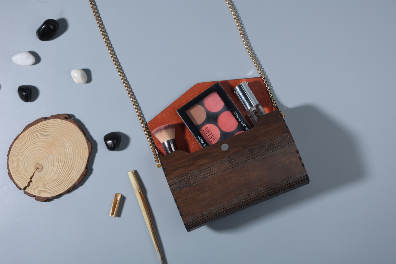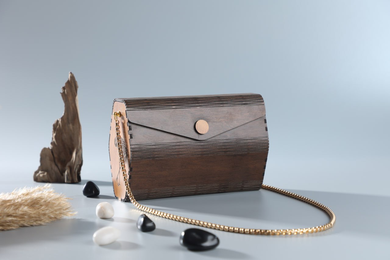 Introducing our Handcrafted Laser Cut Stylish Fashionable Wooden Party Wear Sling Hand Bag, complete with a detachable and adjustable sling for versatile wear.