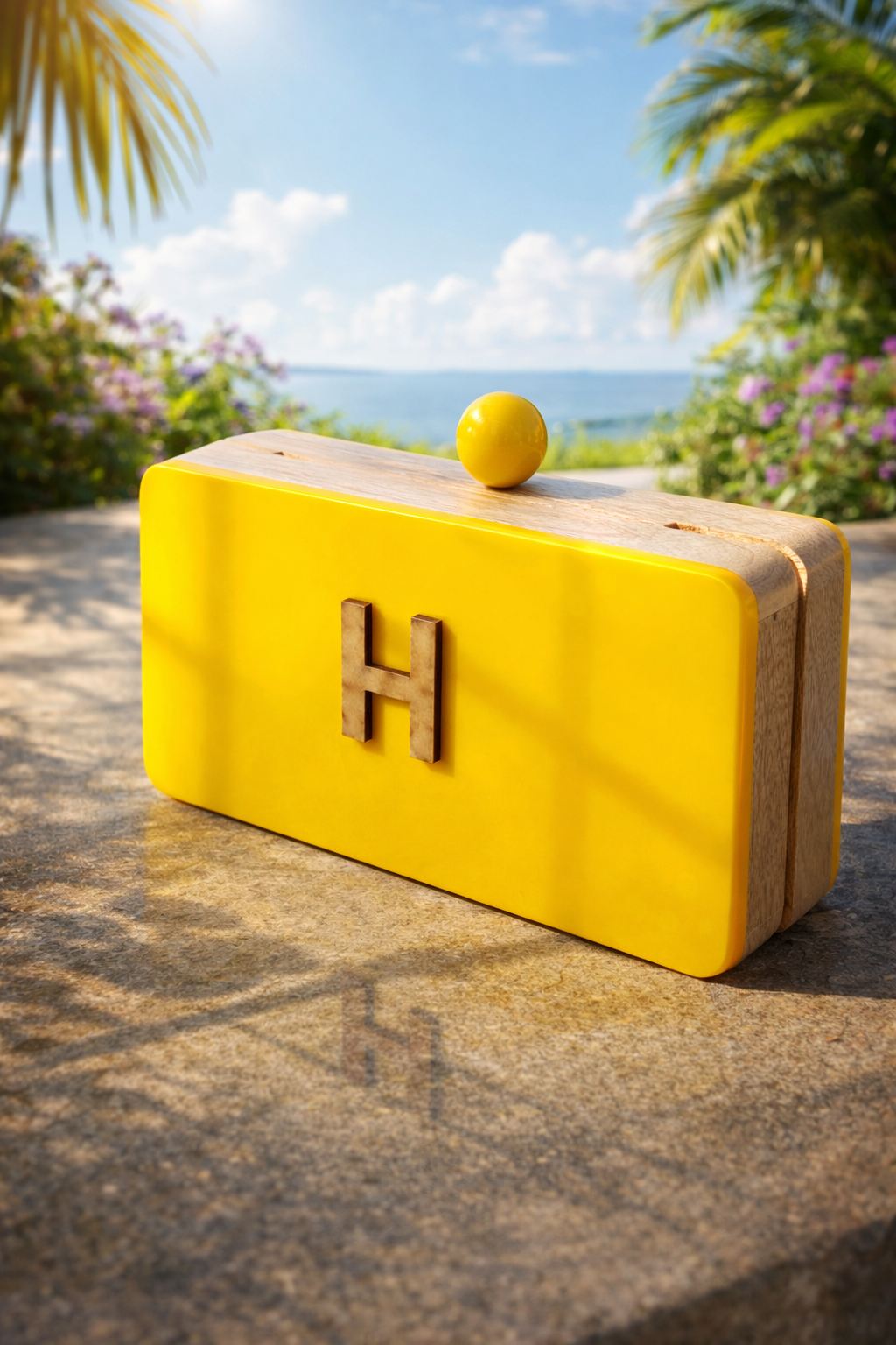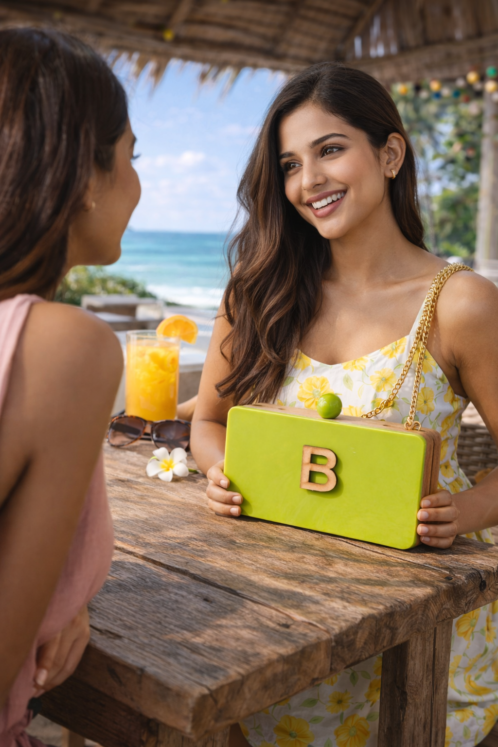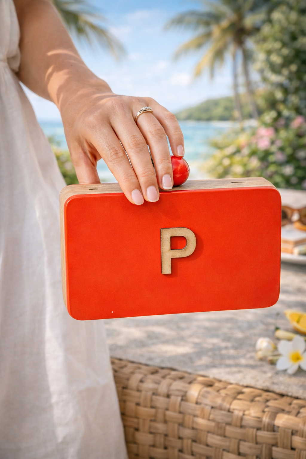 Make it truly yours with our Customized Color-Block Name Initial Clutch, crafted with the initial of your choice. Made from solid acacia wood and finished with high-gloss enamel colour panels on both sides, this fashion-forward bag blends artisanal craftsmanship with bold, summery style.