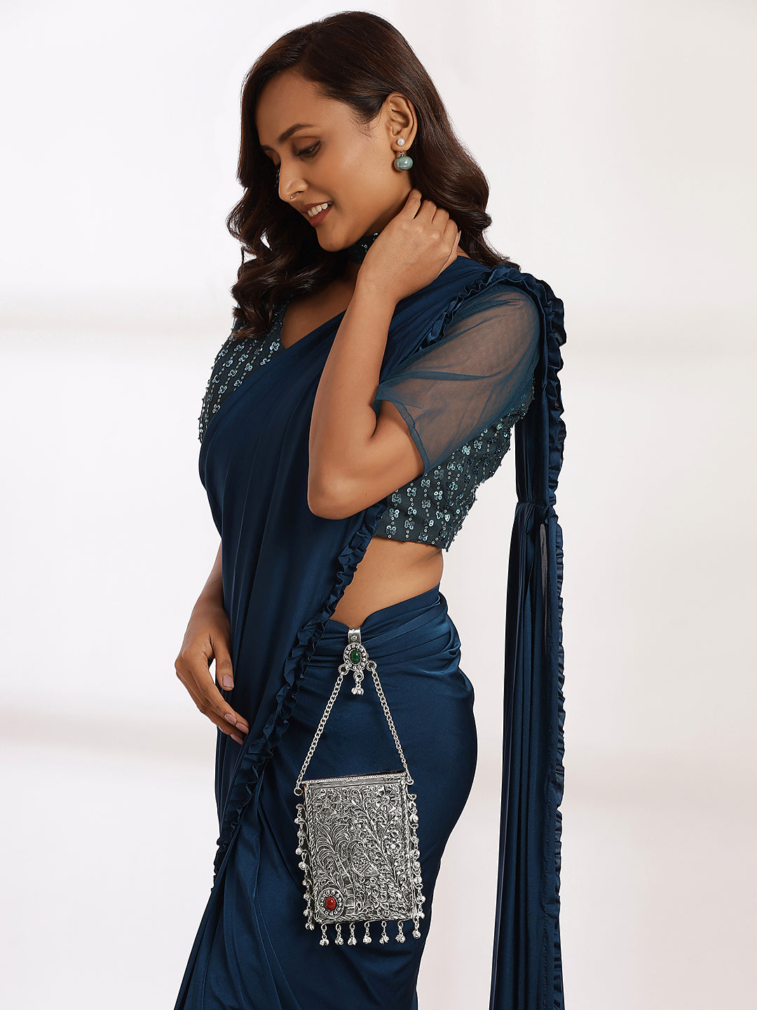 Handcrafted Peacock Brass Silver festive Mobile Pouch