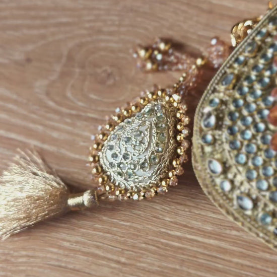 Sheesh Mahal Moha Peach crystal and kundan handbag