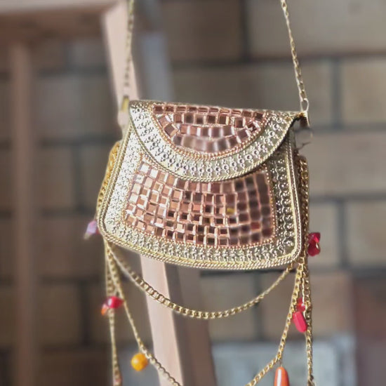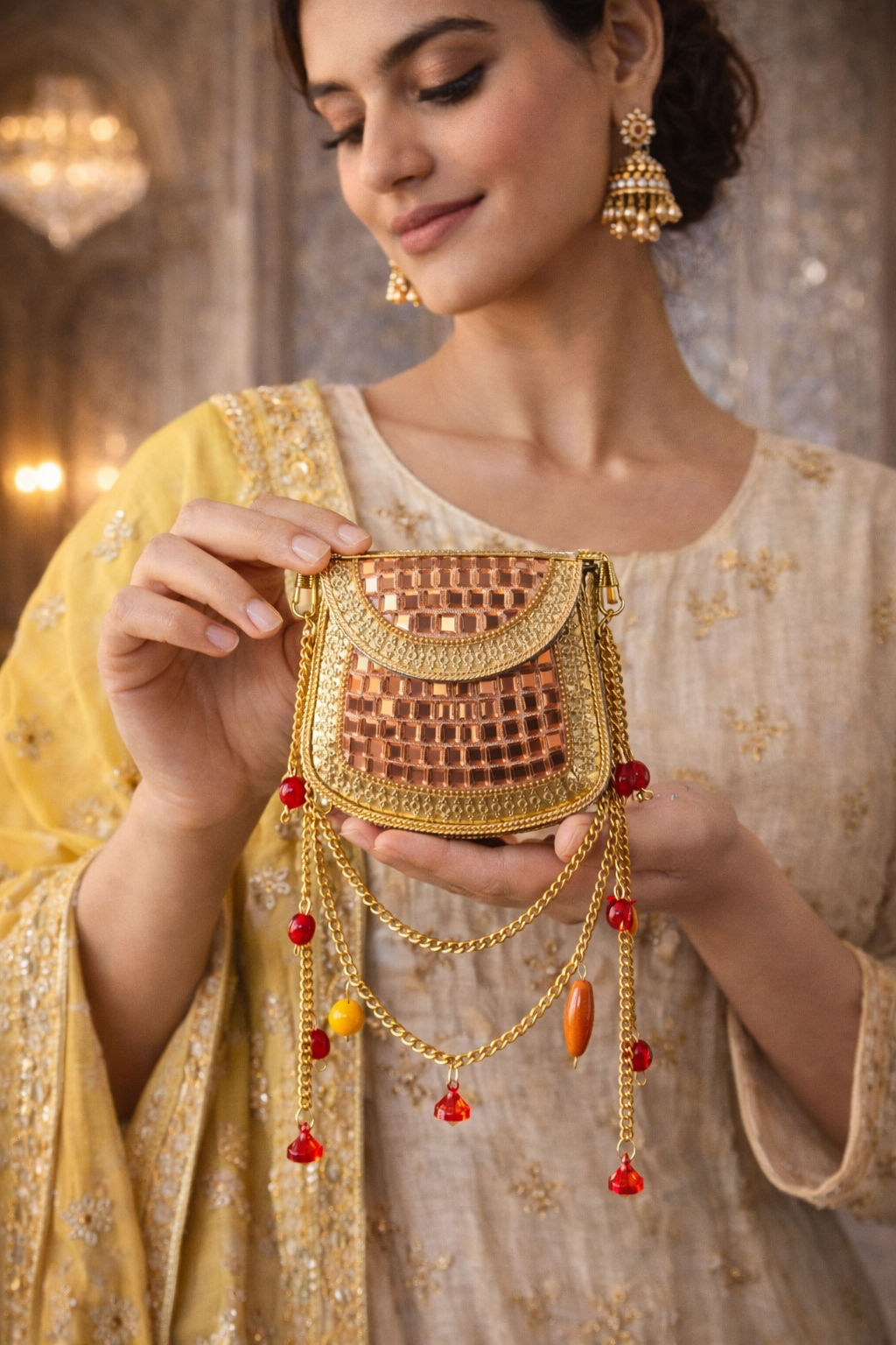 Sheesh Mahal Nano bags - Rose Gold with brass and red beads