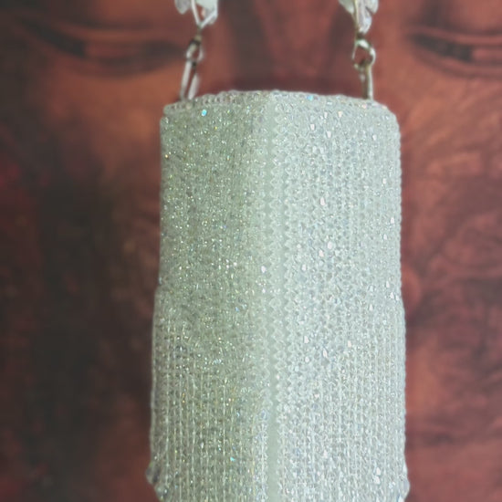 Designed for evenings that deserve a little extra sparkle, the Crystal Bag is a statement accessory crafted to elevate every look. Adorned with shimmering crystals and delicate fringe detailing, this mini masterpiece reflects light beautifully with every movement.