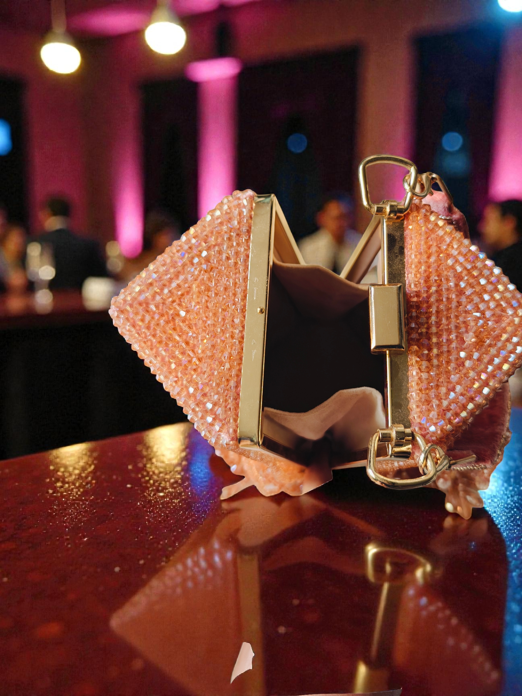 Available in three radiant shades — Gold, White, and Rose Gold — the Lumière Crystal Bag lets you choose the perfect tone for every occasion.