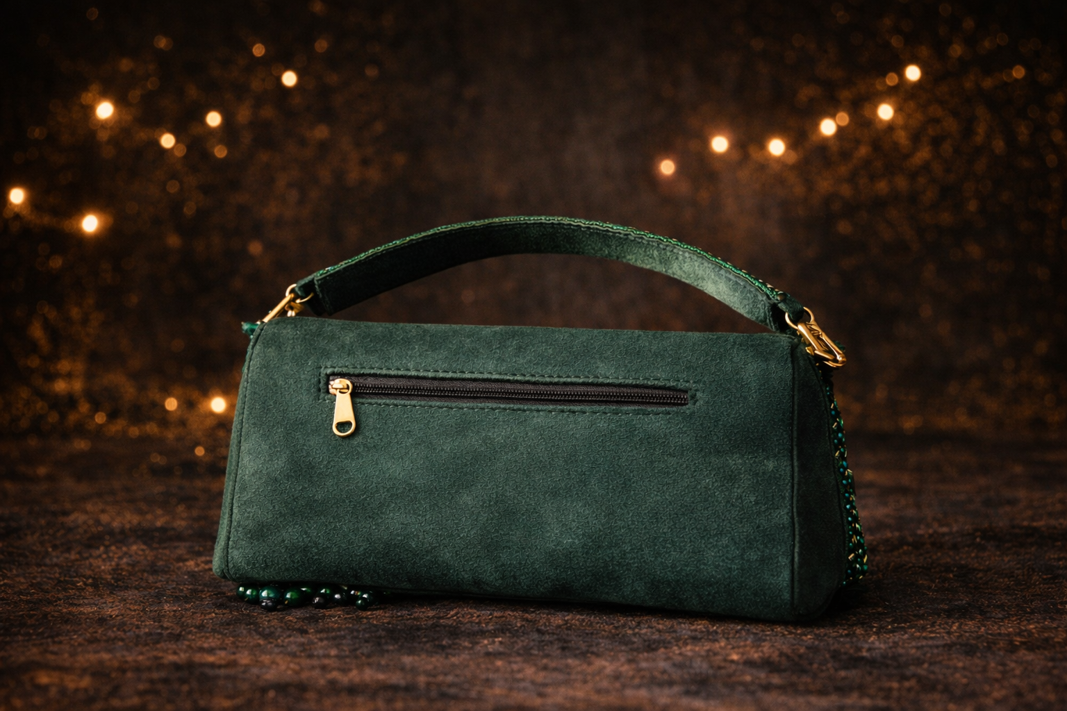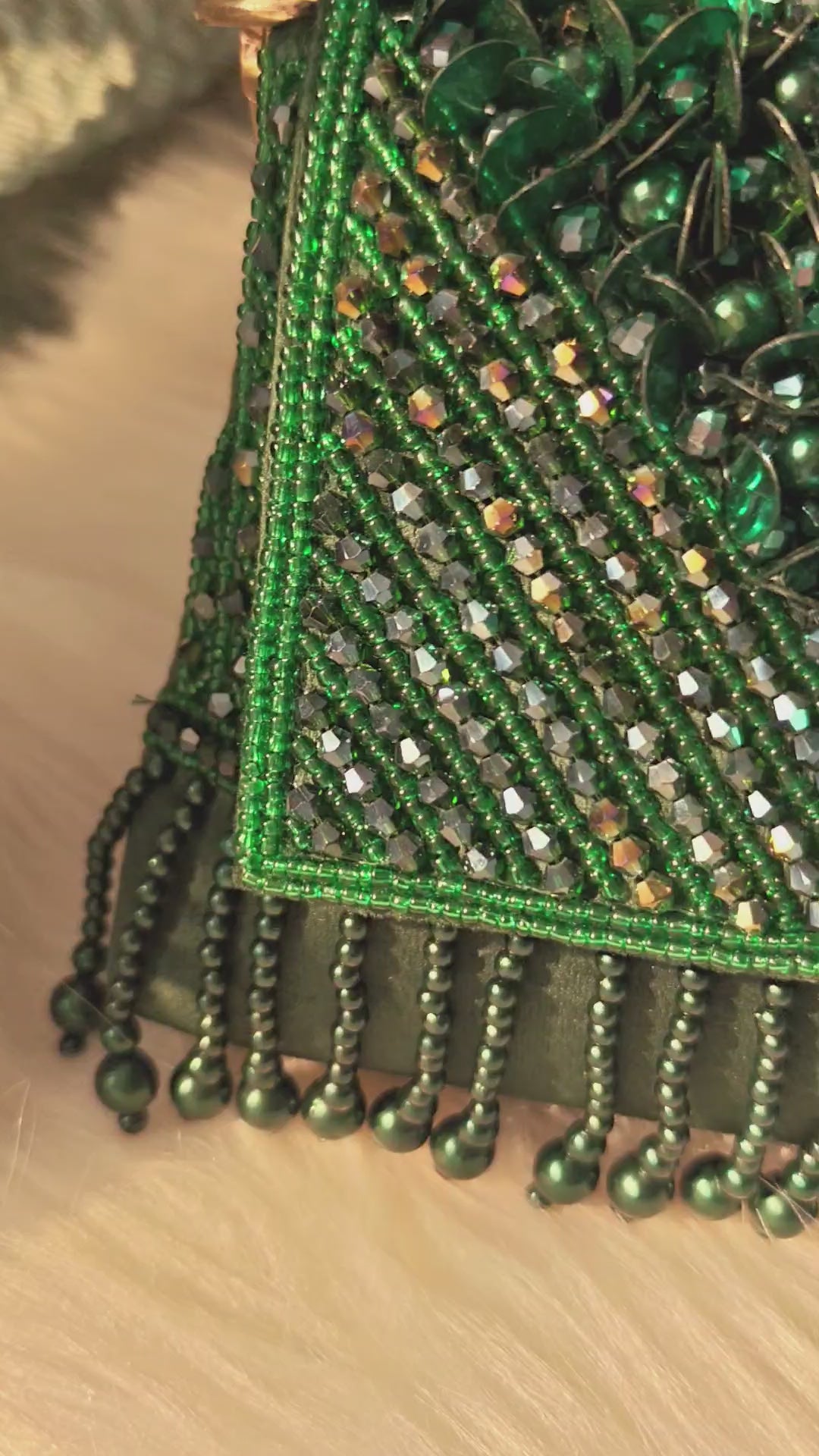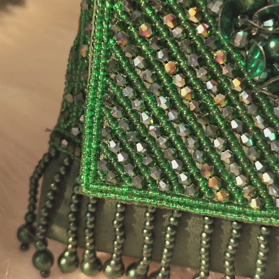 Step into the spotlight with the Emerald Lumière — a statement evening bag crafted to glow after dusk. Hand-embellished with layers of shimmering crystal beads on a rich velvet base, this bag captures light from every angle, creating an effortless aura of elegance and glamour.