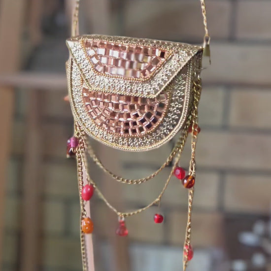 Sheesh Mahal Nano bags - Rose Gold with red crystals